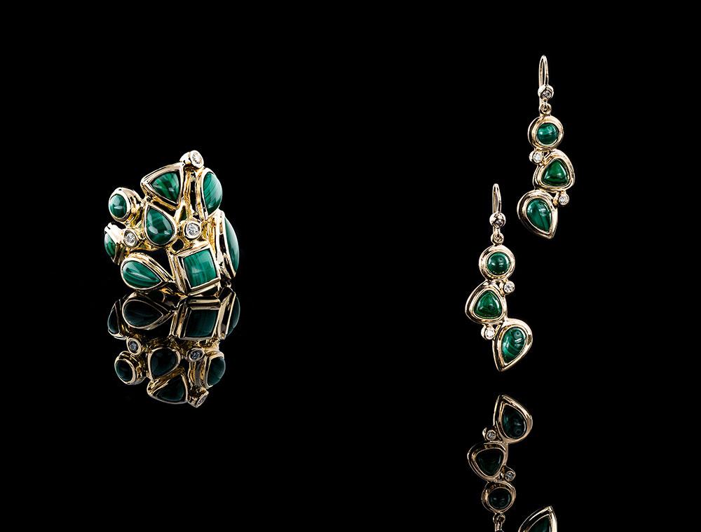 There is something for everyone in this robust series highlighting the natural beauty of malachite; a chunky bold bib necklace or a and delicate pendant or dramatic drop earrings set with touches of diamonds - these pieces are sure to turn all eyes on you...